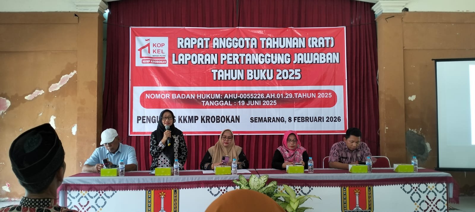 Plt. Lurah Krobokan, Tintin Mariyana meresmikan gerai sembako Koperasi Merah Putih di wilayah Kelurahan Krobokan, Kecamatan Semarang Barat, Kota Semarang pada Minggu, 8/2. Peresmian ini bersamaan dengan penyelenggaraan Rapat Anggota Tahunan (RAT) Laporan Pertanggung Jawaban Tahun Buku 2025 oleh pengurus Koperasi Kelurahan Merah Putih (KKMP) Krobokan dengan dihadiri para anggotanya. Selain itu hadir pula perwakilan Dinas Koperasi dan Usaha Mikro Kota Semarang, Camat Semarang Barat, dan LPMK Krobokan.